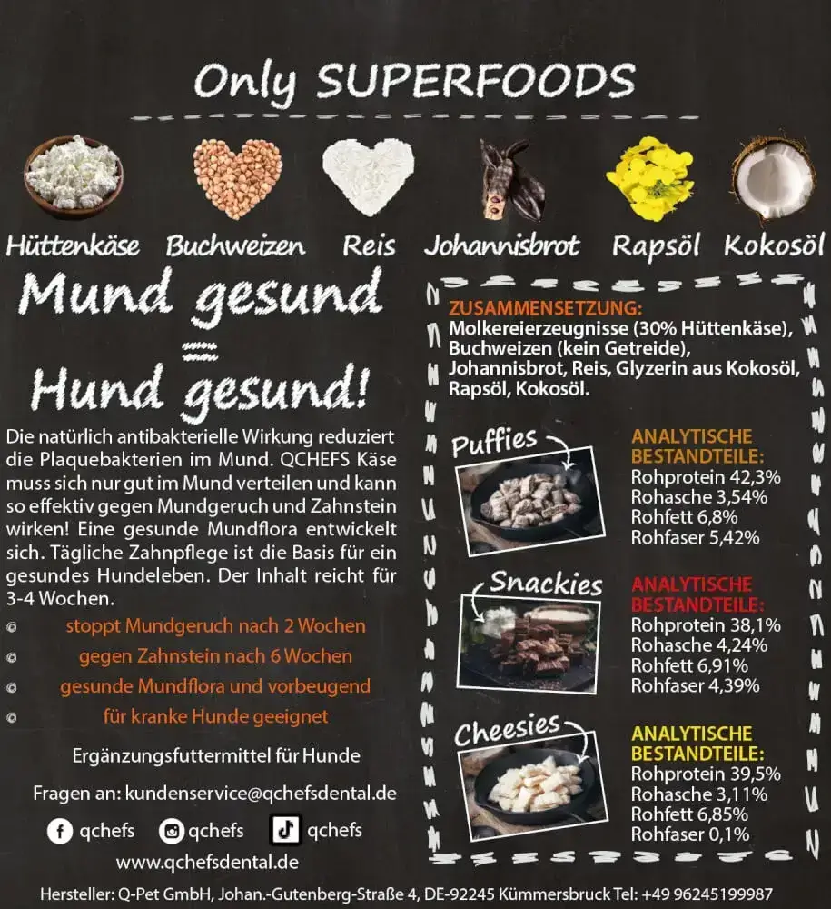 - Studie: Interne QCHEFS‑Studie zur Plaque‑Reduktion bei Tieren (N = 30, Dauer = 4 Wochen)