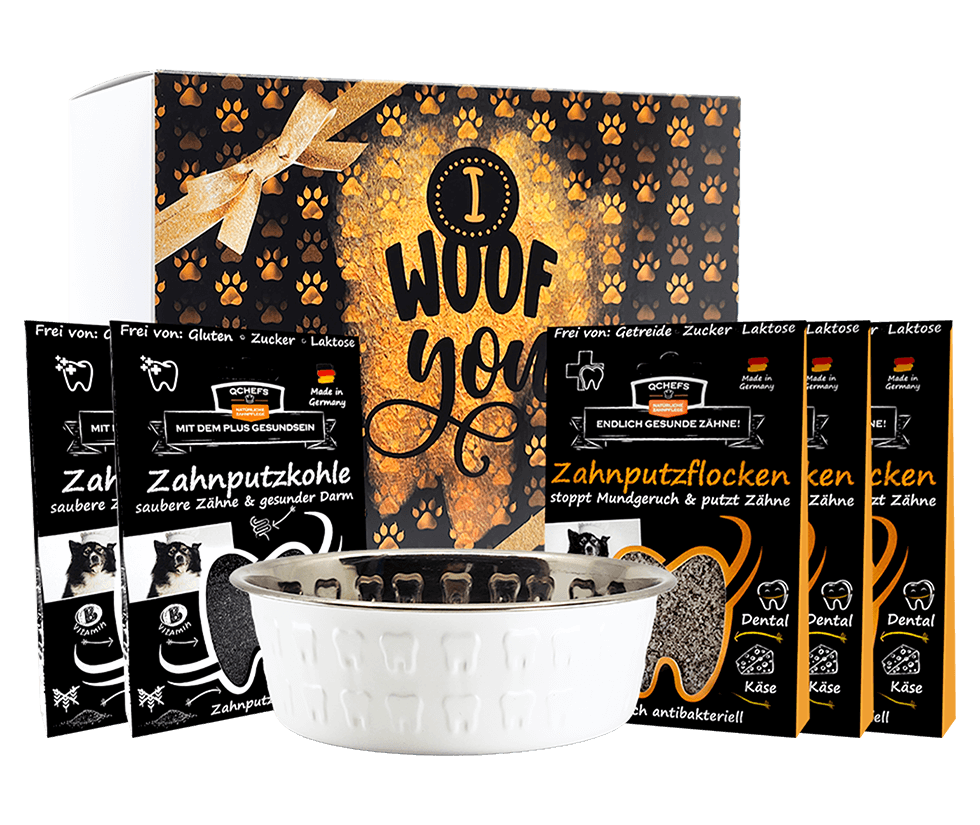 2 x täglich auf Leckerei von der Schleckmatte wirkt es intensiv oder als Ration die Zahnputz- Paste unter die Lefzen– wenn der Hund entspannt im Bettchen liegt.